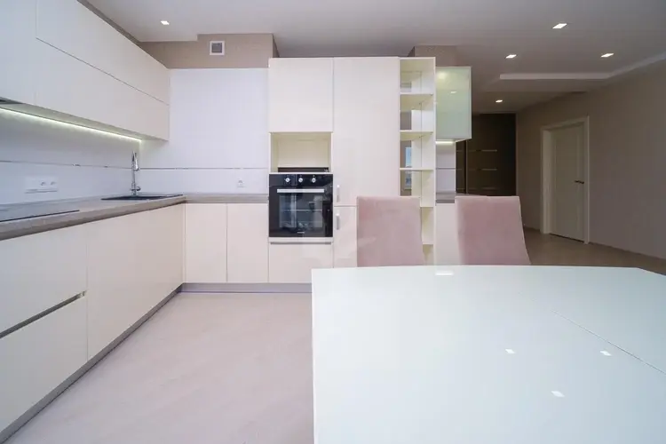 Кухня оснащена кухонным гарнитуром со всей необходимой техникой: варочная поверхность, духовой шкаф, посудомоечная машина, встроенный холодильник.