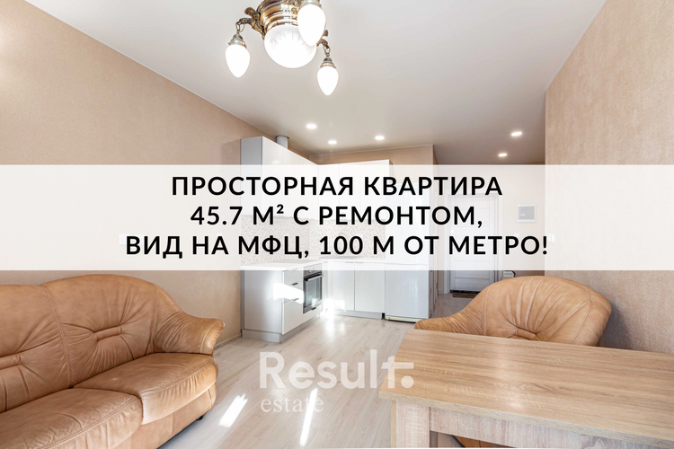 Большая квартира 45.7 метра в 1 минуте от метро!