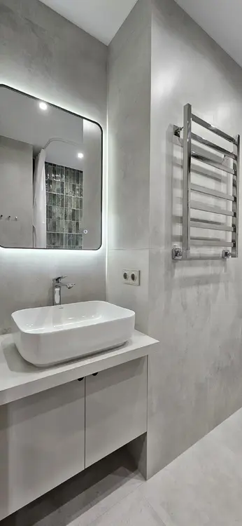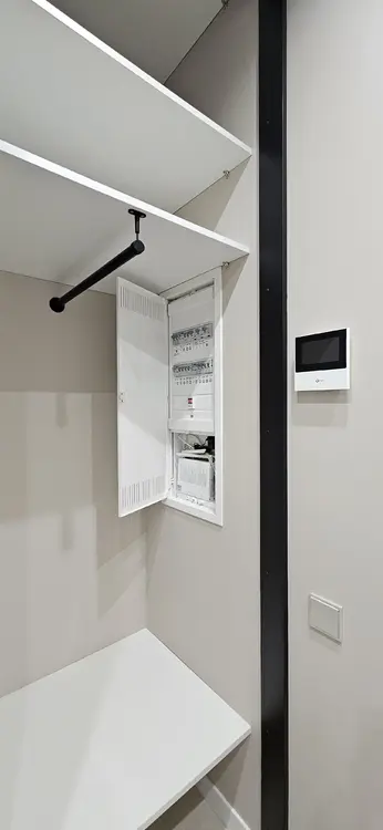 Вместительный встроенный шкаф в прихожей и гардеробная в спальне. Установлена качественная, импортная сантехника. На период отключения горячей воды установлен водонагреватель. В квартире есть кондиционер.
