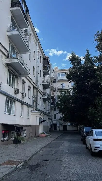 - Квартира общей площадью 76.9 м.кв расположена на 3-м этаже 5-ти этажного кирпичного дома 1952 года постройки – сталинка