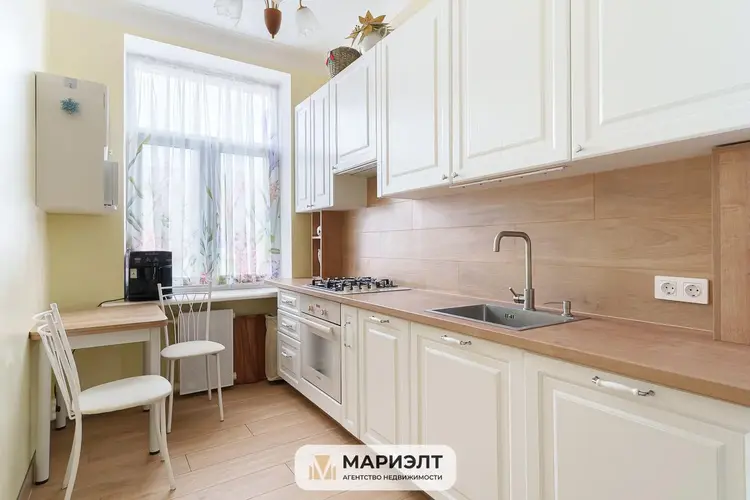 Квартира – настоящая жемчужина с качественным ремонтом, который гармонично сочетает классический стиль с современными удобствами. Светлые стены создают легкость и комфорт в пространстве, а оригинальные элементы отделки придают квартире неповторимый шарм. Особую атмосферу придают паркет из массива дуба и сохранившиеся потолки с оригинальной лепниной, которые подчеркивают историческую ценность жилья.
