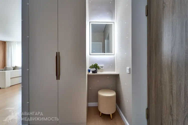 Просторная атмосферная абсолютно новая евродвухкомнатная квартира с потрясающими видами на Минск с высоты 22 этажа в ЖК D3, выполнена по дизайн-проекту в экостиле в спокойных теплых тонах с применением исключительно высококачественных материалов, техникой и мебелью премиум класса из Европы.