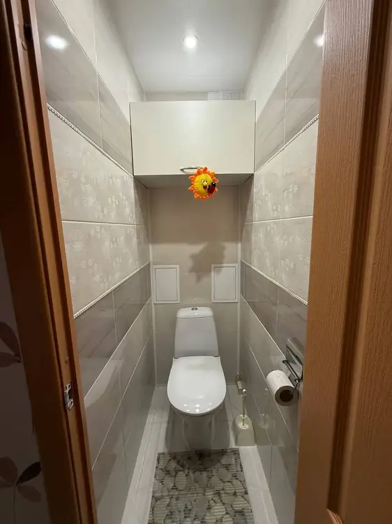 На окнах установлены стеклопакеты ПВХ, металлическая входная дверь, ламинированные полы. Кухня, коридор, ванна, туалет-плитка.