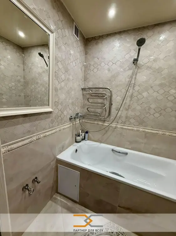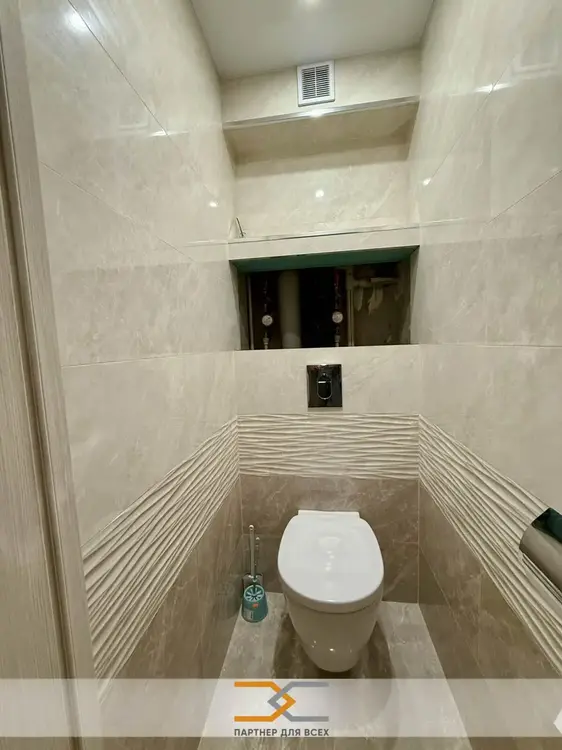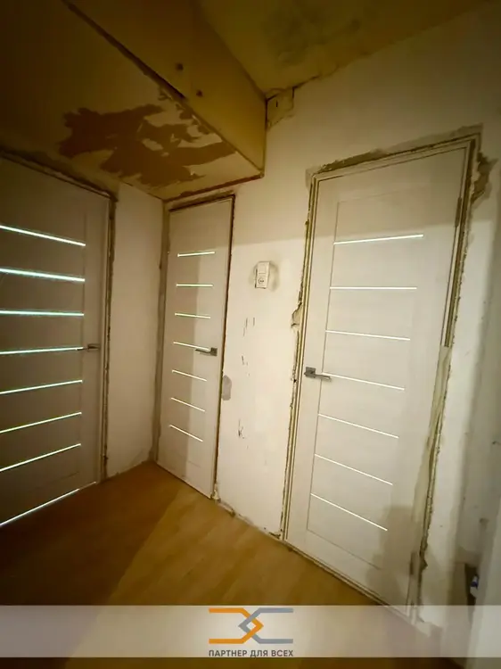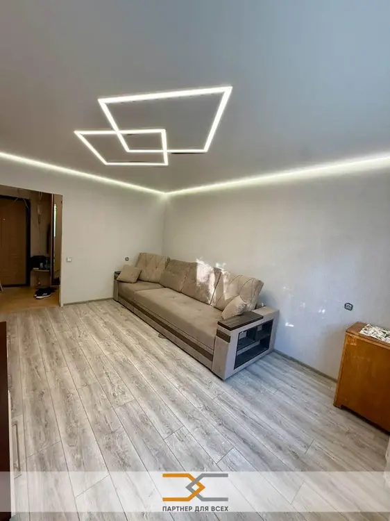 Просторный зал с креативным потолком с подсветкой. С/у и ванна с современной отделкой, импортной и качественной сантехникой. Двери массив, пол ламинат, в кухне плитка. Коридор под отделку с встроенным объемным шкафом-купе.