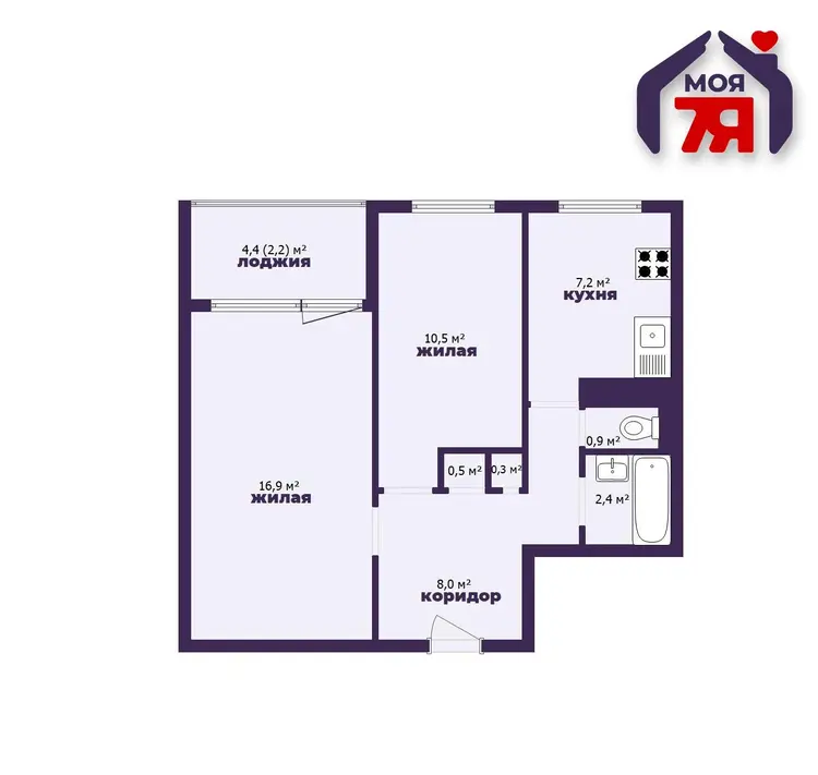 -Общая площадь 49 кв.м. распределена логично и без потерь: две изолированные комнаты дарят личное пространство каждому.