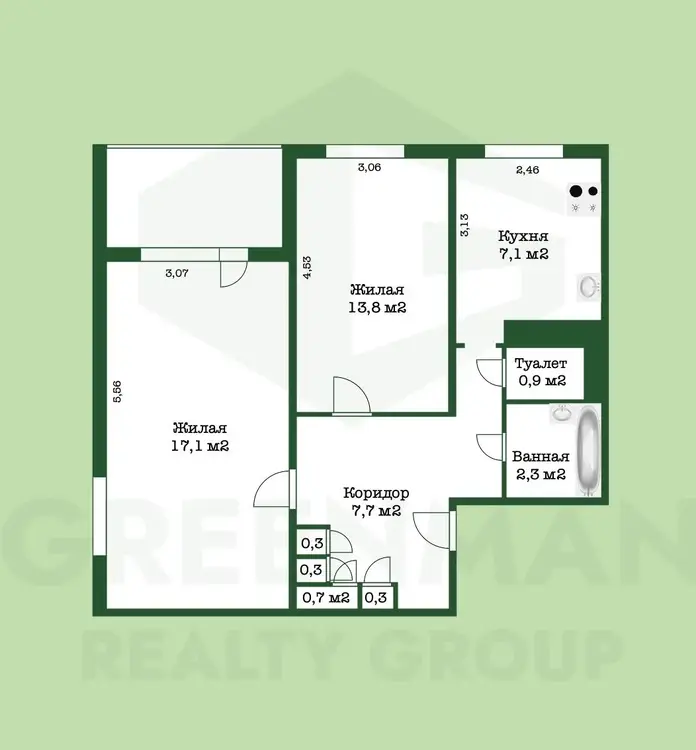 Общая площадь по СНБ 49 Общая площадь: 46.8. Жилая площадь: 27.6. Площадь кухни: 7.1
