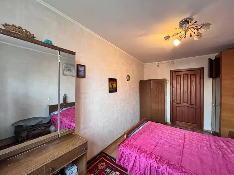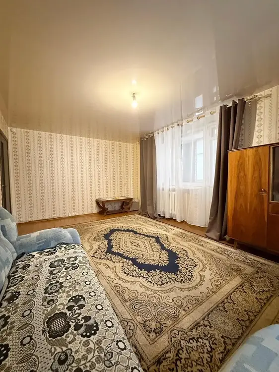 Стены окрашены финской краской, материал пола плитка и паркетная доска. Большой встроенный шкаф. Вся мебель входит в стоимость.