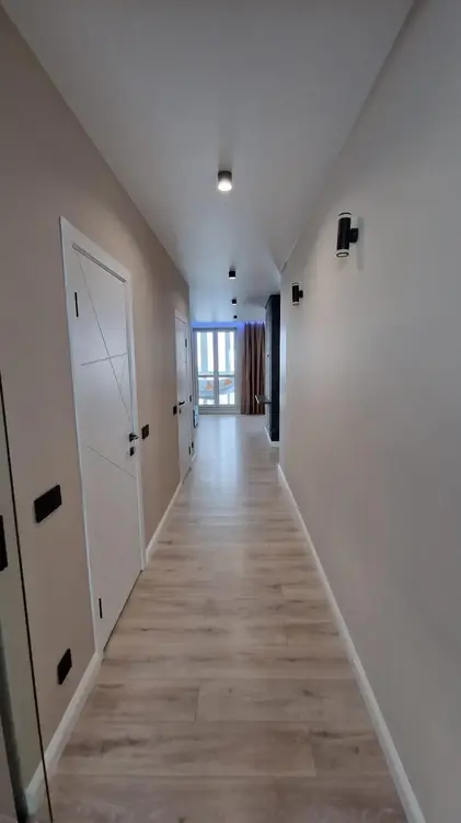 – Выполнен евроремонт из исключительно качественных материалов: напольное покрытие – ламинат от немецкого производителя, в санузлах и лоджии – современная керамическая плитка; по всей квартире вмонтирована подсветка; межкомнатные двери – белая эмаль; входная – надежная металлическая.