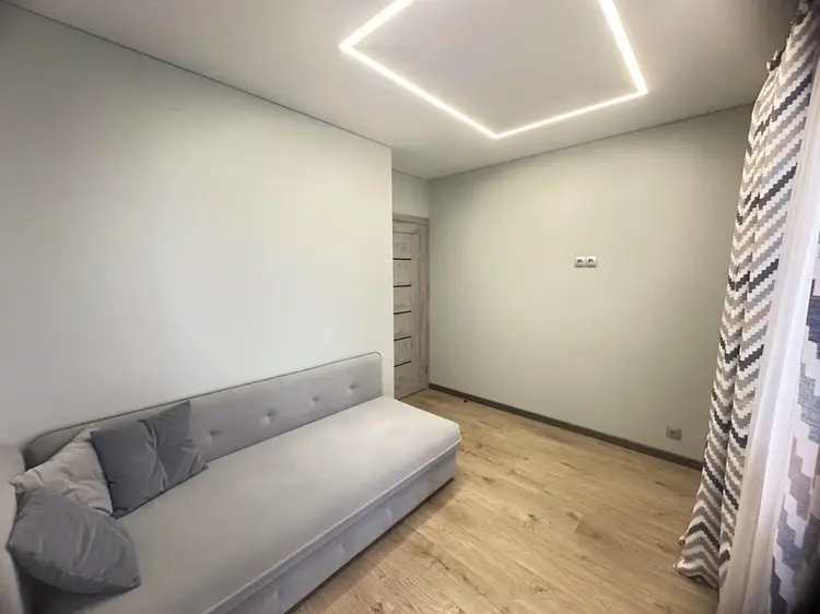 Окна в пол, парящие потолки с отличным светом, во всей квартире уложен ламинат (в туалете и ванной комнате плитка), стиральная машина, инсталляция, проведены коммуникации для кондиционера, лоджия утеплена.