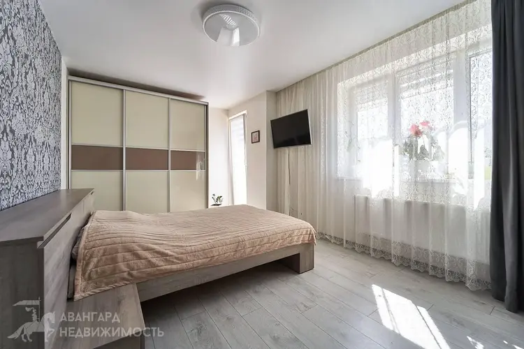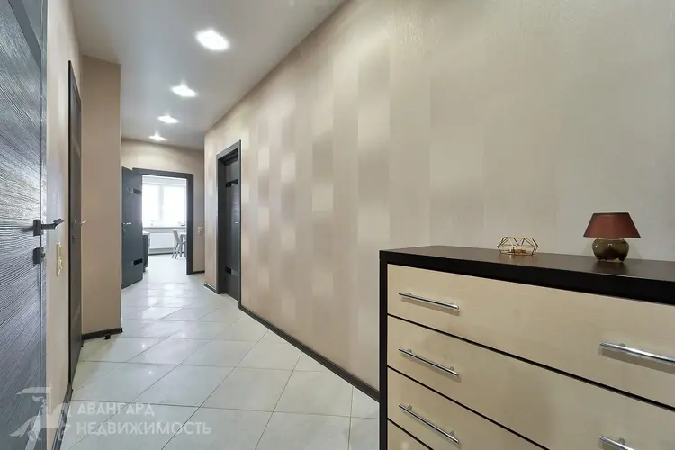 В квартире сделан основательный, современный ремонт. При отделке использовались дорогостоящие импортные строительные материалы. Напольное покрытие ламинат и плитка. Стены выровнены и оклеены обоями. Натяжные потолки по всей квартире. Дорогостоящие межкомнатные двери. Квартира максимально оборудована мебелью и техникой. Системы хранения представлены вместительными шкафами –купе в коридоре и спальне. Детская комната обустроена корпусной мебелью (шкаф, стол, полки, комод и кровать). В кухне установлена встроенная кухня с бытовой техникой. Ванная комната и туалет облицованы.