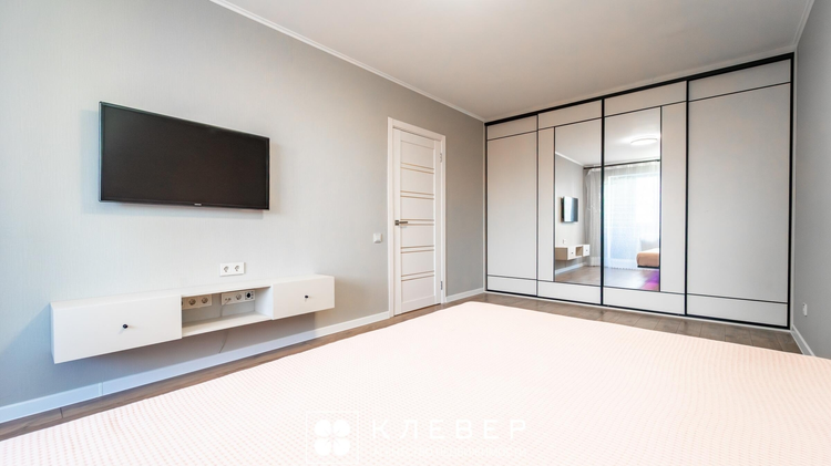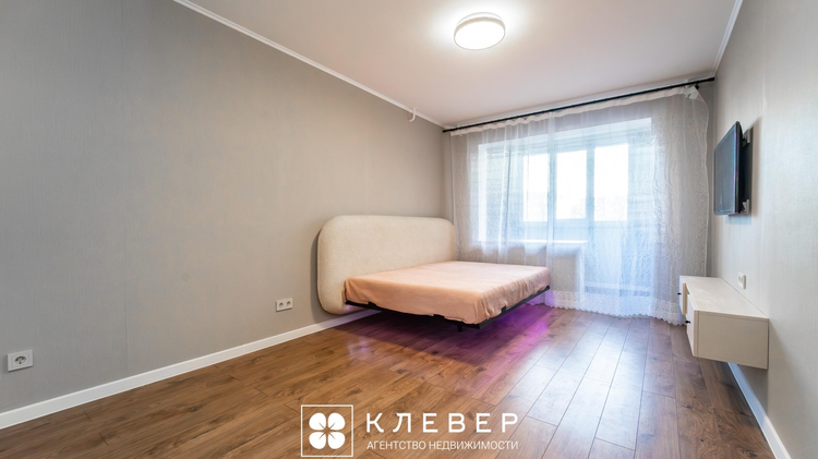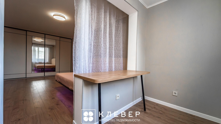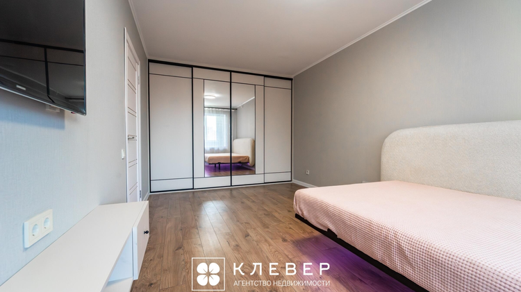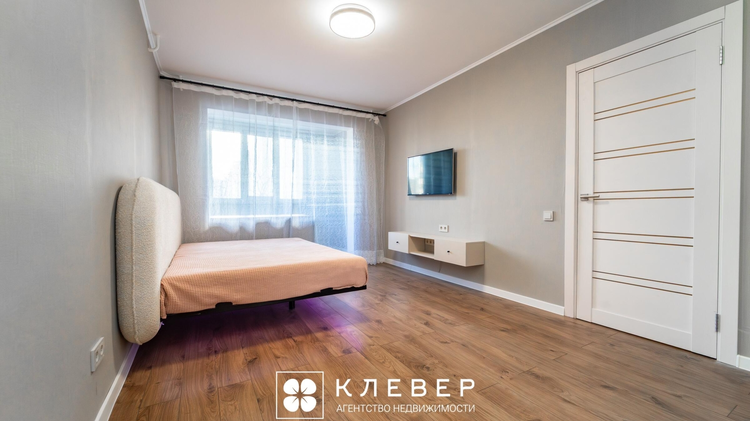 Жилая комната 17.2м2 оборудована необходимой мебелью для комфортного проживания-просторный шкаф-купе, кровать с матрасом, телевизор, а также рабочая зона.