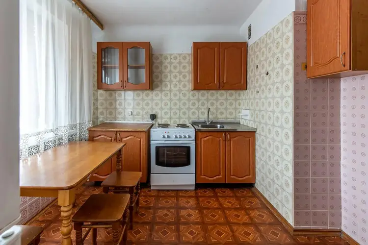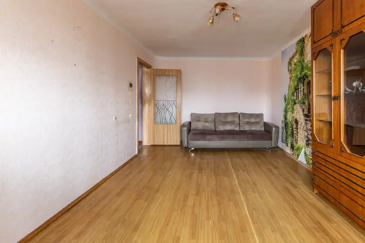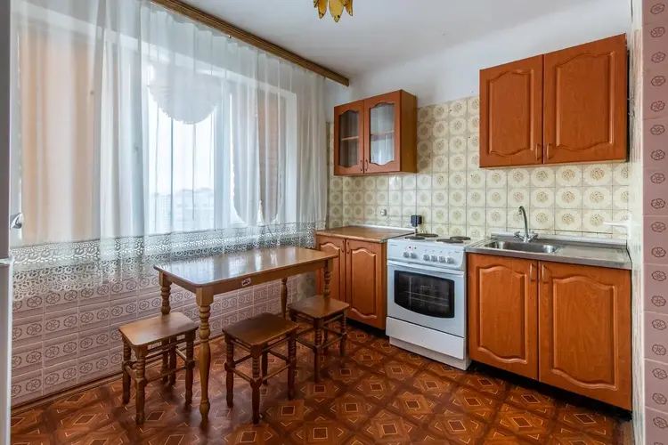 Квартира расположена на 8-ом этаже 9-ти этажного дома. Установлен новый лифт. Площадь квартиры по СНБ 54,28 м. кв., общая площадь 52,98 м.кв., жилые комнаты 17,96 и 11,8 м.кв., кухня 9,34 м.кв., застекленная лоджия. Окна квартиры смотрят на внешнюю сторону дома - на юго-запад.