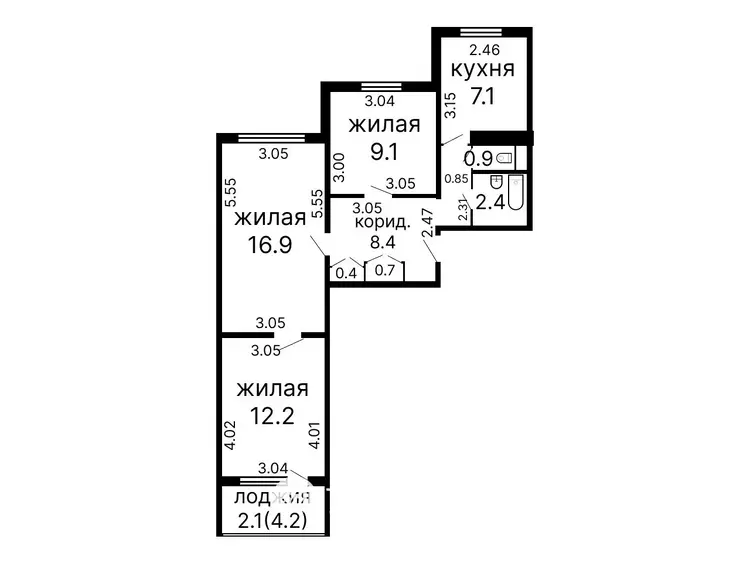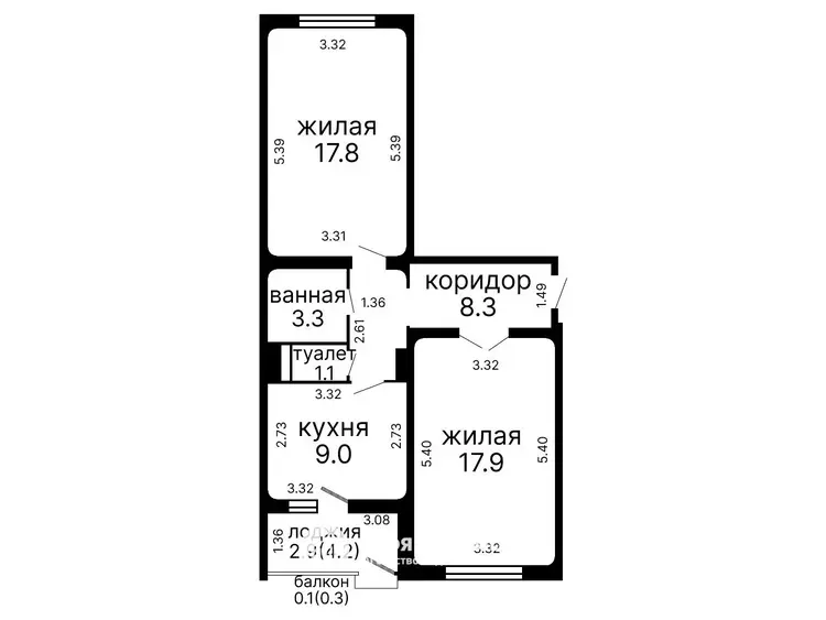 Просторная светлая 2-комнатная квартира (70,2 м2) по ул. Алибегова, 8/2