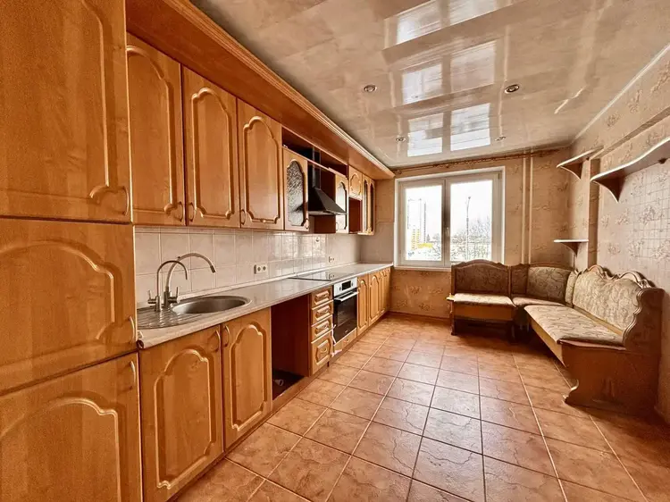 Квартира полностью готова для проживания или сдачи в аренду. На полу во всей квартире линолеум, на стенах – обои, окна остеклены деревянными стеклопакетами с хорошей экологичностью. Кухня 8,8 м.кв. оборудована газовой плитой.