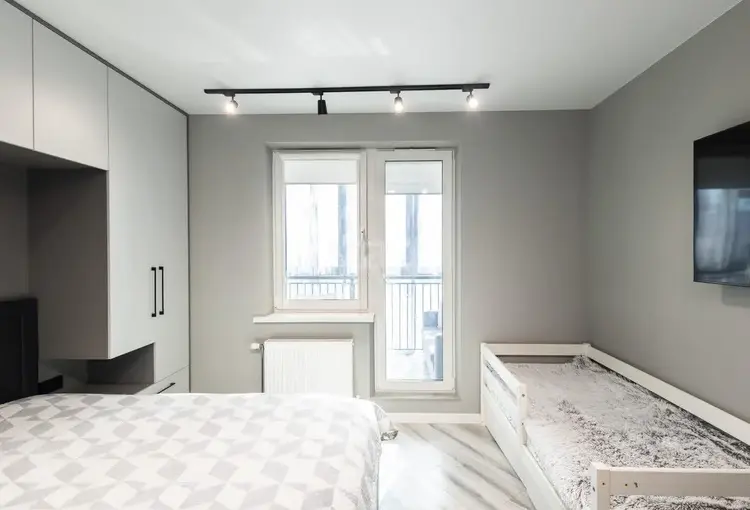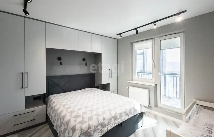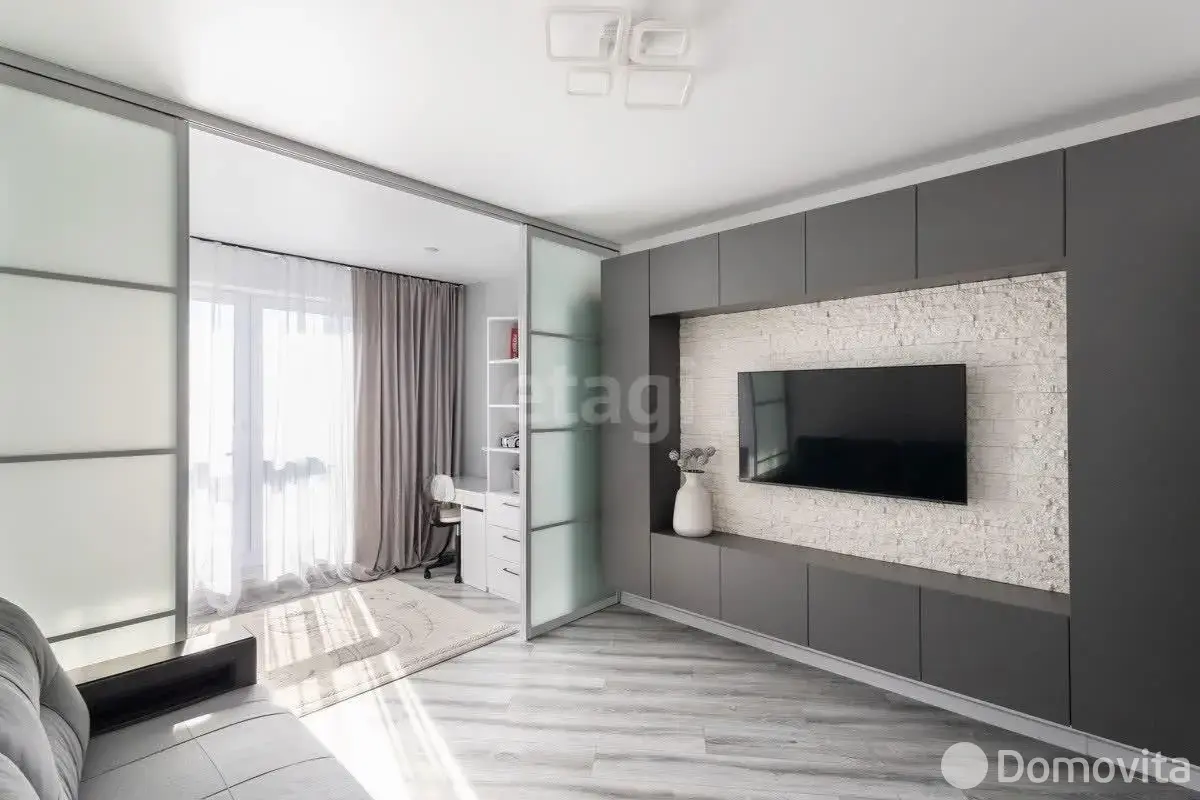 Свет и воздух в каждой комнате.· Большая комната 17,9 м2 разделена на зоны с помощью стильных раздвижных дверей из матового стекла. Это идеальное решение для пары, где один работает, а другой отдыхает.