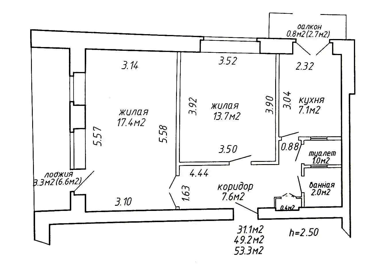 53.3 м2