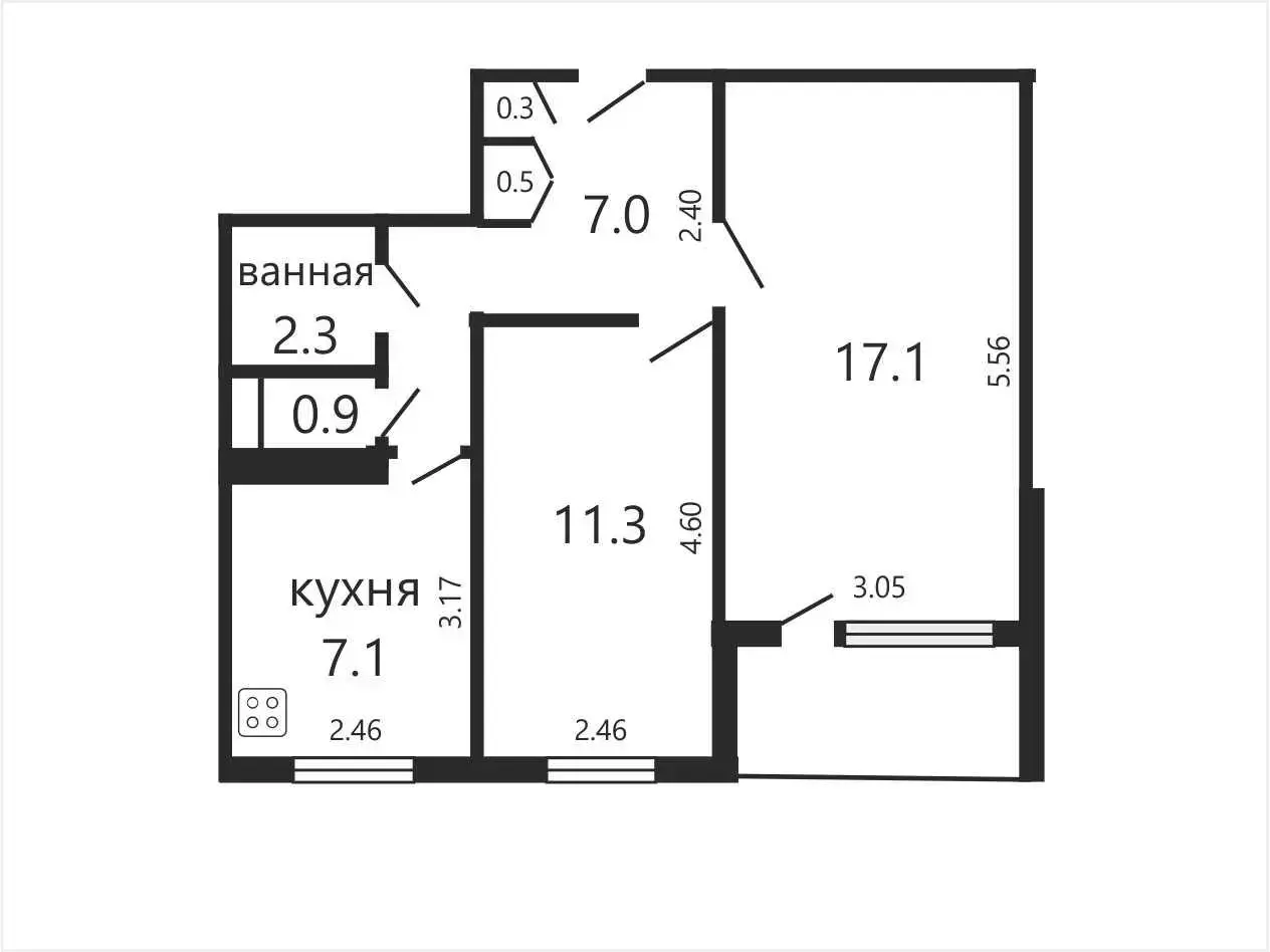 - Общая площадь: 46,6 кв.м