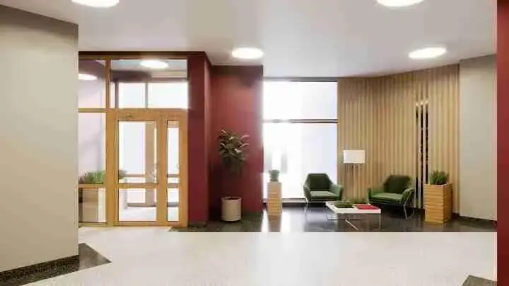 На первом этаже домов располагается лобби с уникальным дизайном и место для консьержа.