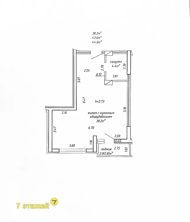 · Общая площадь (по СНБ): 44,6 м² · Общая площадь: 42,6 м²