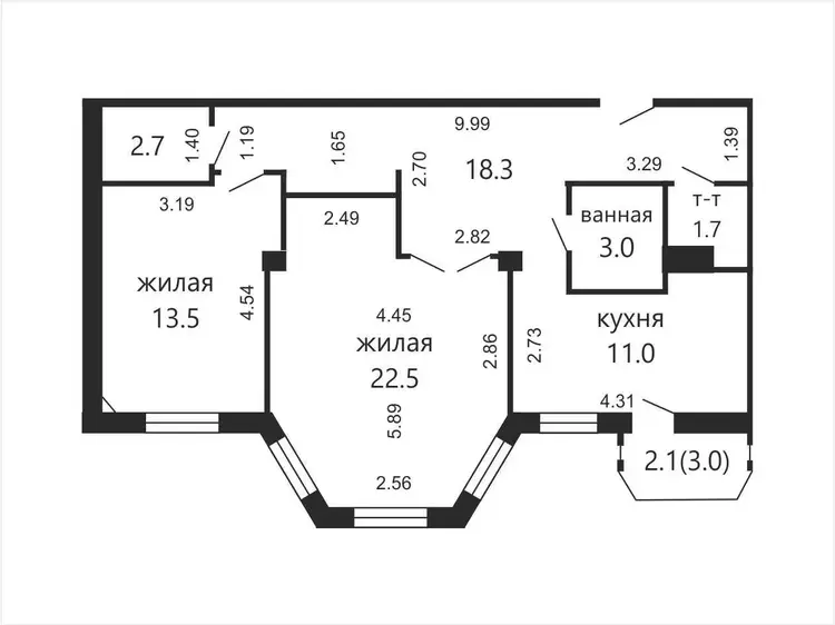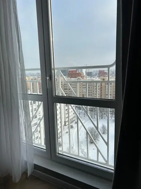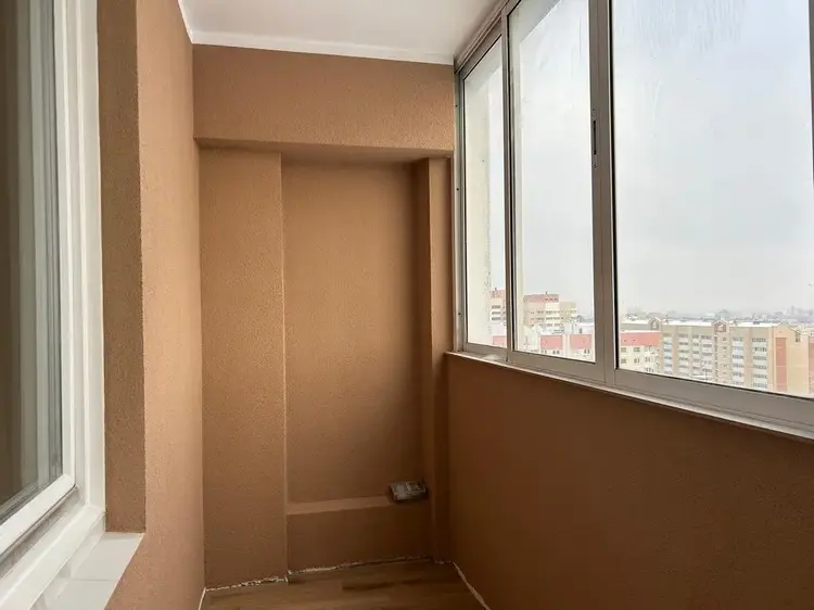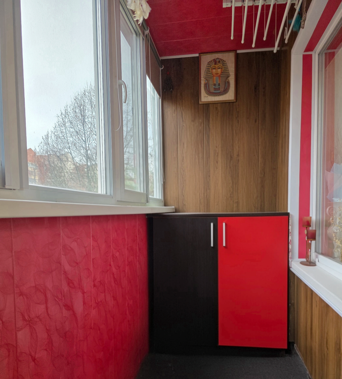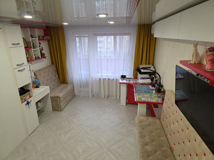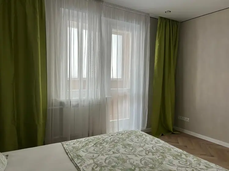 В квартире отдельные комнаты правильной формы. Окна выходят на две стороны. В большой комнате устроено красивое французское окно. Есть просторная лоджия. Прекрасный вид из окна.