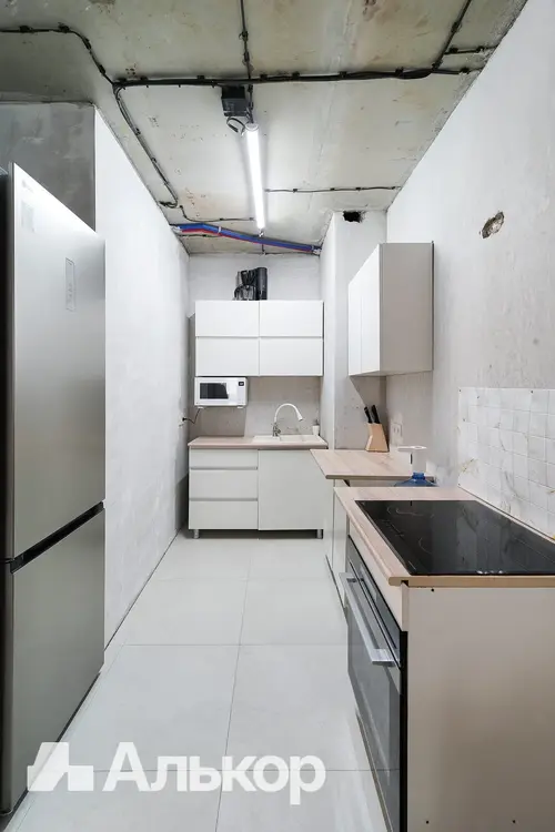 Окна выходят на парковку, соседей напротив не имеется. Во дворе расположен детский сад. Планировка квартиры продуманная - имеется гардероб, кухня частично соединена с гостиной в единое пространство. В основной комнате выполнены строительно-монтажные работы, стены прошпаклеваны под оклейку обоев, так что остаётся преобразить квартиру на свой вкус. Новому собственнику также остаются отделочные материалы для окончания ремонта.
