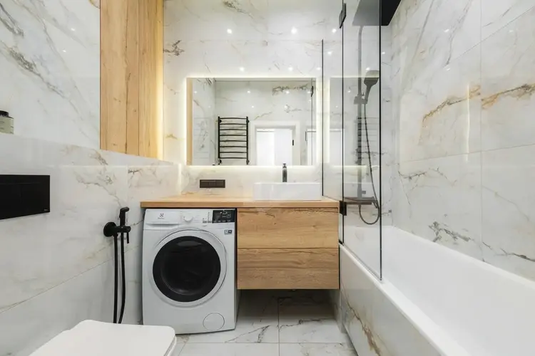 - Ламинат и керамогранит, современная сантехника