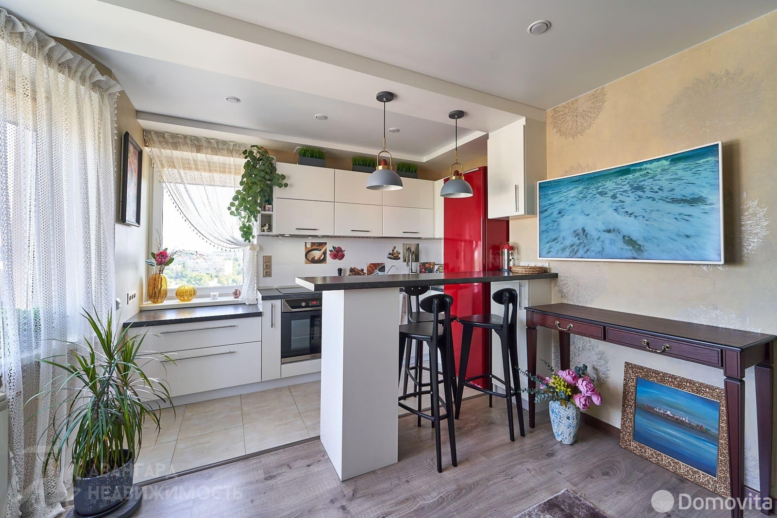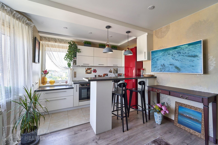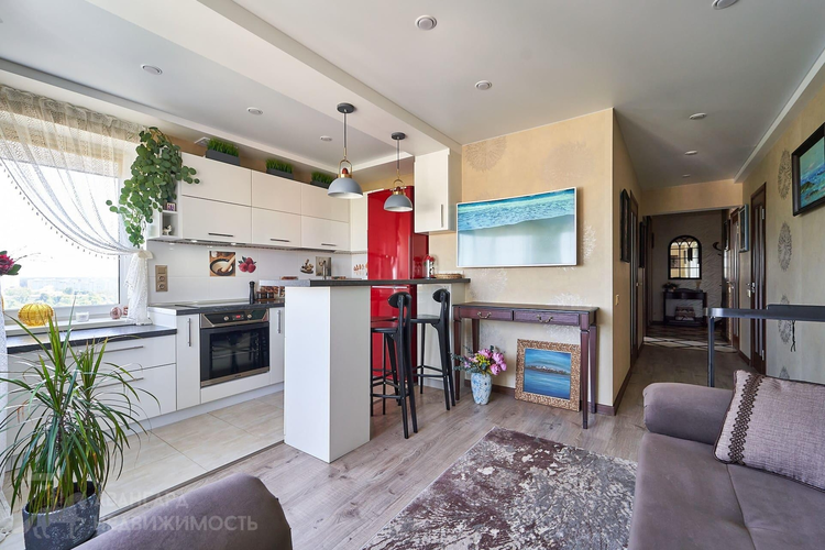 Кухняоснащена качественной встроенной техникой (варочная панель, духовой шкаф, посудомоечная машина). Санузел раздельный. В коридоре вместительная гардеробная с удобной геометрией.