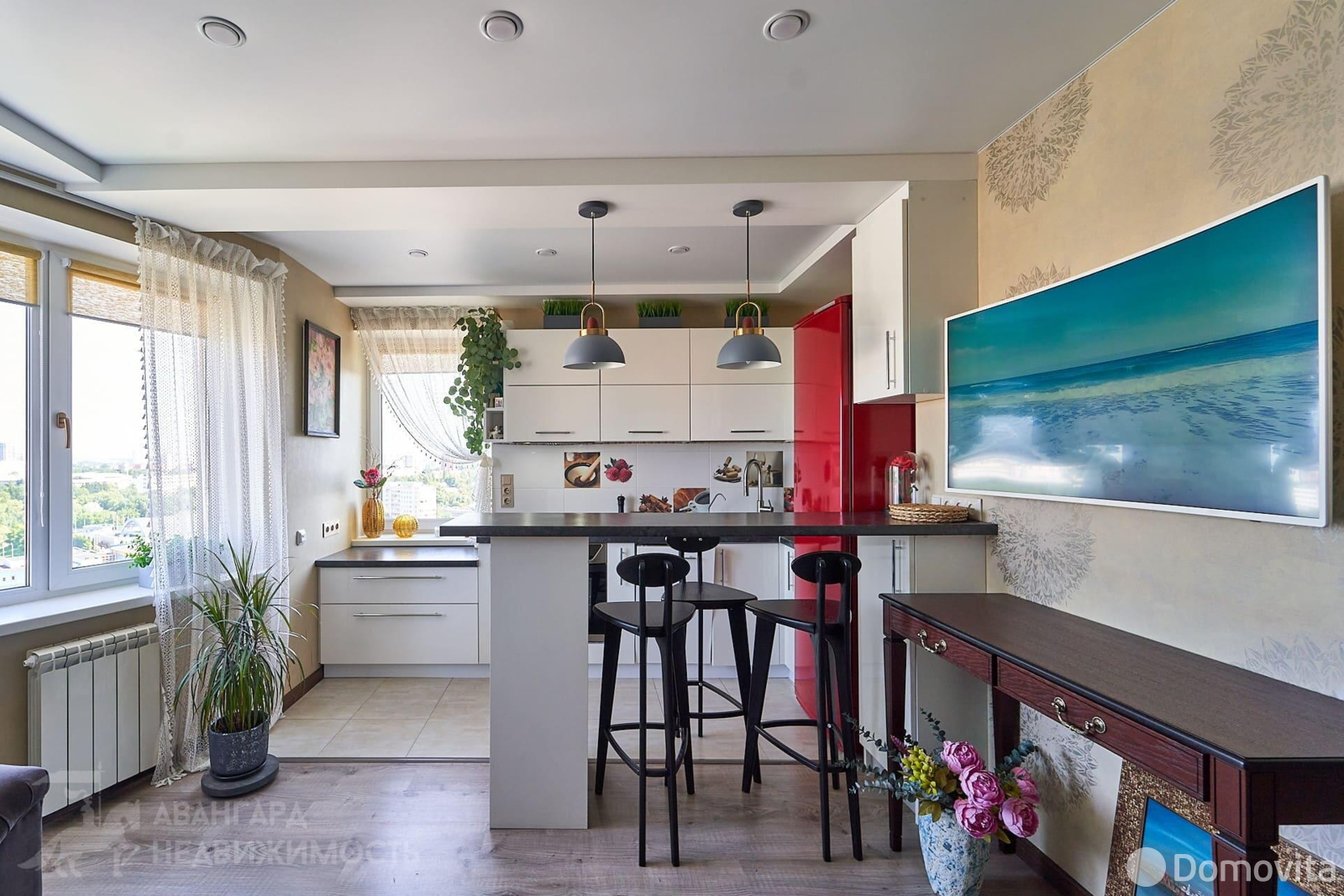 В квартире выполнен качественный ремонт, она оснащена мебелью и всей необходимой техникой для комфортной жизни. Благодаря многочисленным источникам освещения здесь всегда уютно и светло. Таким образом, квартира готова к проживанию.