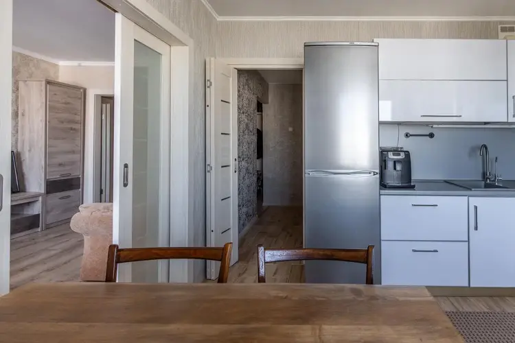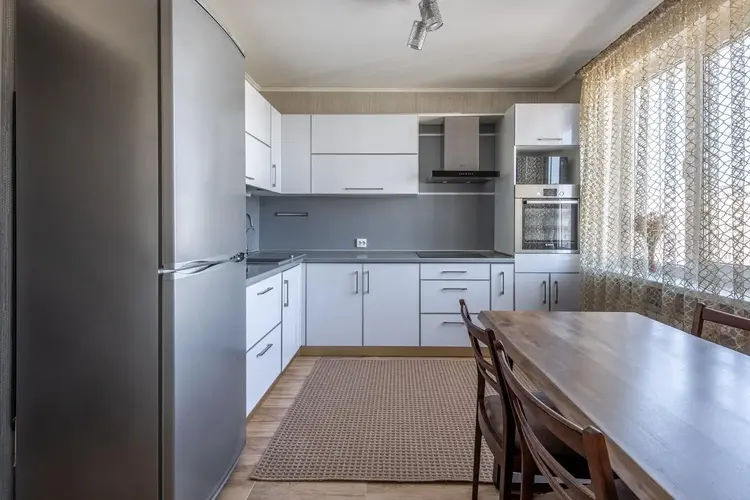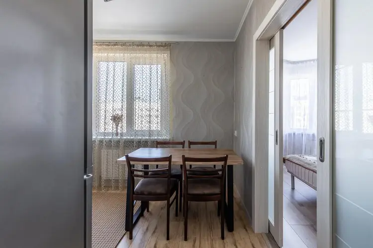 · Просторная кухня (9.4 кв. м) с выходом на застекленную лоджию.
