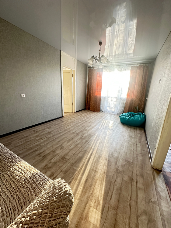 Квартира в жилом состоянии. Напольное покрытие - ламинат, линолеум. Установлены стеклопакеты с профилем из ПВХ. Санузел облицован плиткой современного образца, установлена сантехническая посуда, приборы учета воды..