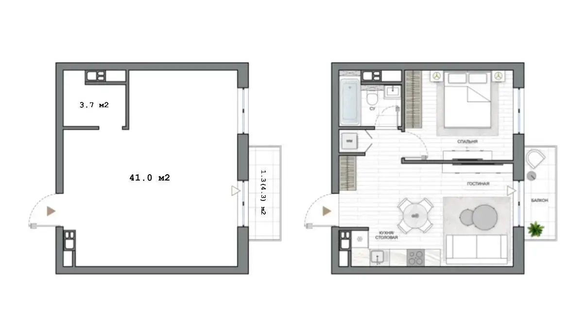 Санитарный узел: 1, НО СТОЯКОВ 2 - это значит, что кухня и сан.узел могут быть на РАЗНЫХ СТОРОНАХ КВАРТИРЫ + можно спроектировать дополнительно гостевой туалет!