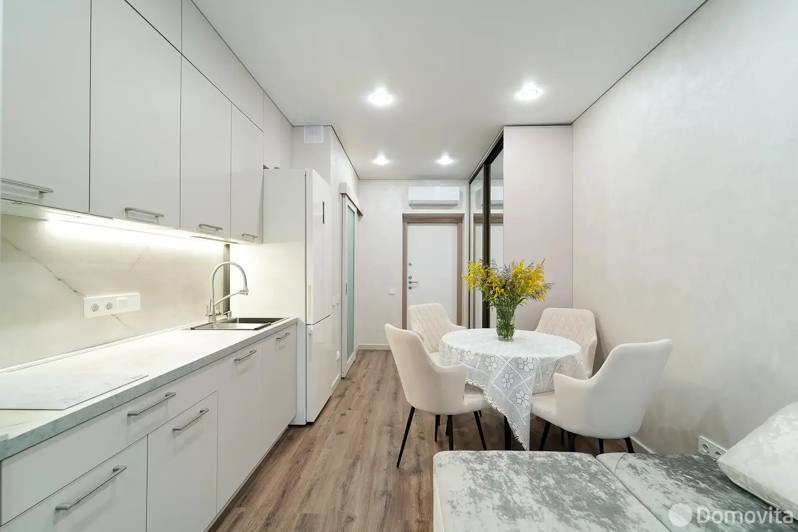 Выполнен качественный ремонт: стены отделаны декоративной штукатуркой, на полу- кварцвинил, в ванной комнате — пол с подогревом. Установлены энергосберегающие стеклопакеты в алюминиевом профиле с высокой звукоизоляцией, кондиционер, система фильтрации воды. Кухонная фурнитура — немецкого бренда. Вся сантехника — Германия и Польша, техника с расширенной гарантией до 5 лет.Дизайнер продумал грамотное зонирование — в квартире есть отдельная жилая комната.