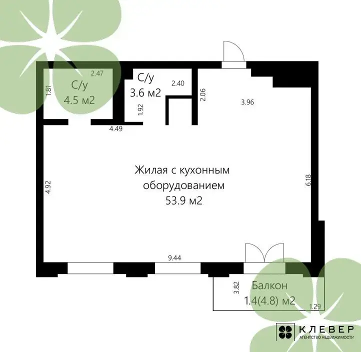 38 м2