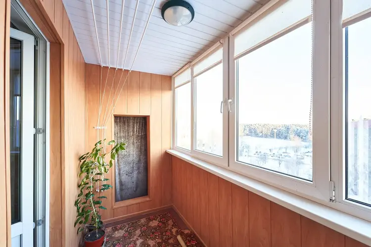 Двойная застекленная лоджия 6 м2, позволяет оборудовать доплнительные места хранения и дополнительное пространство для отдыха.
