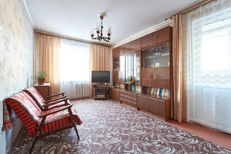 В квартире ровные стены и потолки, заменены все окна.