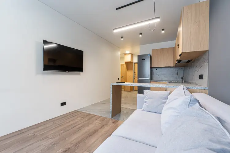 - Практичная площадь 42 м² (по СНБ) оптимально распределена: просторная гостиная, изолированные спальни, современная кухня.