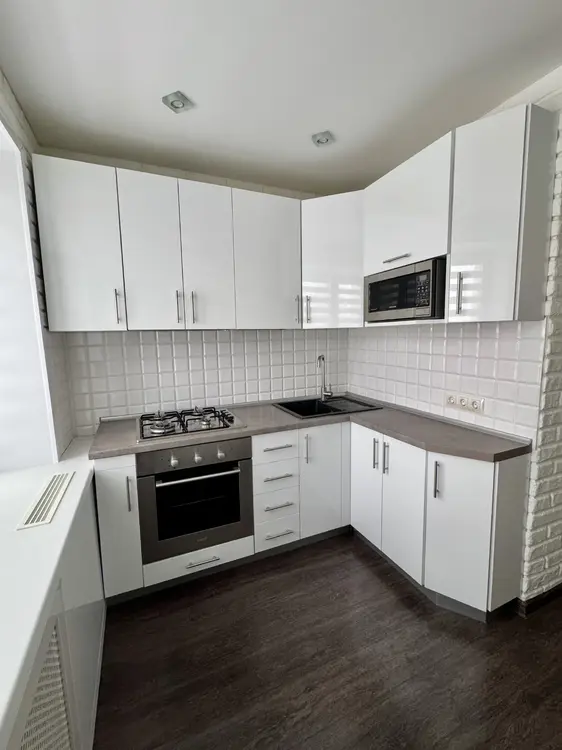 Отличное состояние: окна – новые стеклопакеты, пол – плитка, ламинат, металлическая входная дверь, натяжные потолки с точечными светильниками, плитка в сан.узле. Встроенная кухня с бытовой техникой (варочная поверхность, духовой шкаф, вытяжка, встроенный холодильник), 3 вместительных встроенных шкафа и др. Прекрасное месторасположение дома: экологически чистый район, тихий, зеленый двор, оборудованная детская площадка, места отдыха.