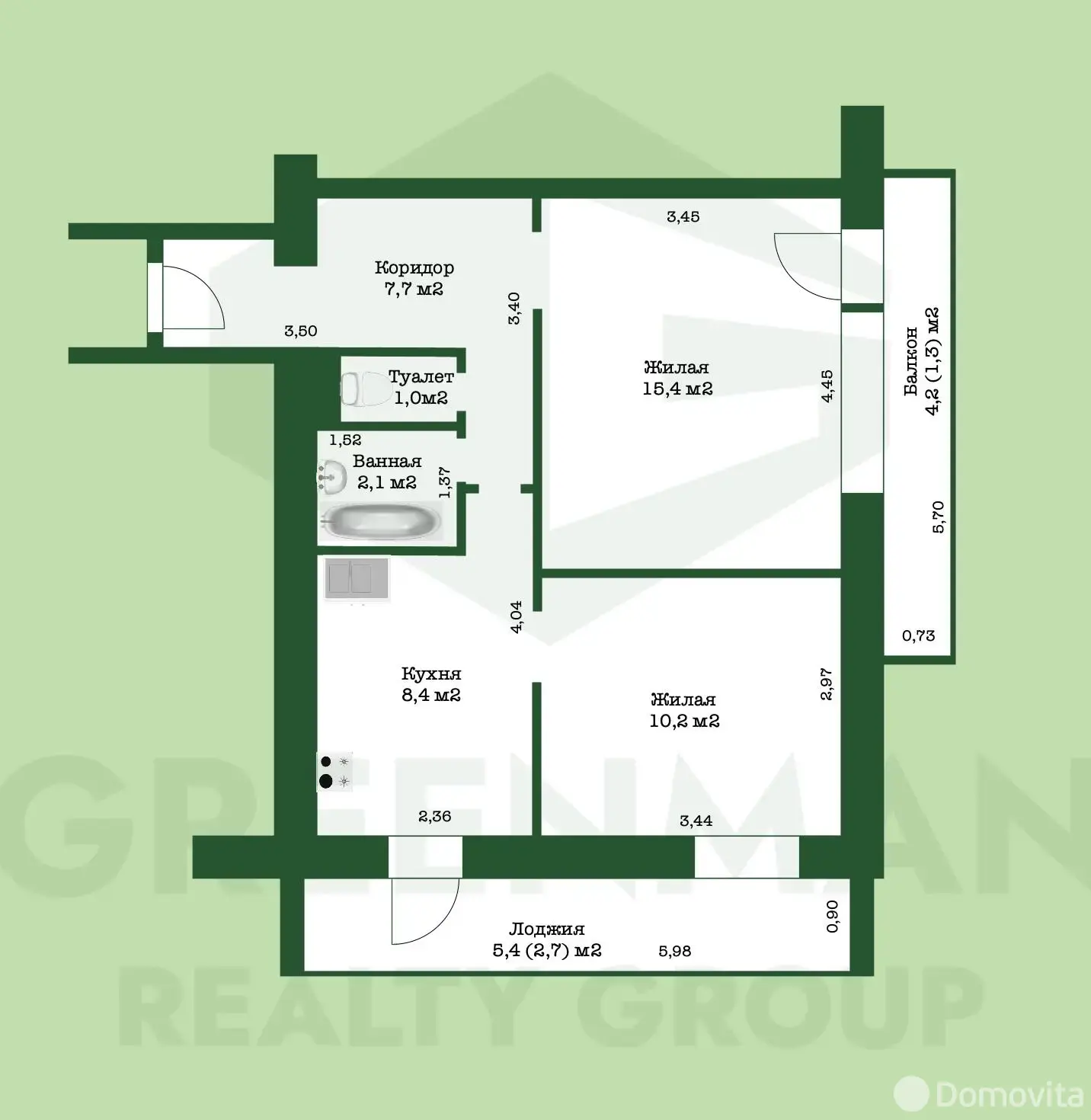 Квартира расположена на 7 этаже 9-ти этажного кирпичного дома 1970 г.п., имеет прекрасную планировку: 2 изолированные комнаты (15,4 м2 и 10,2 м2) , с выходом на балкон (4,2 м2) , кухня (8,4 м2) с просторной лоджией (5,4 м2), раздельный санузел и большой коридор (7,7 м2). Имеется собственная кладовая в подвале.