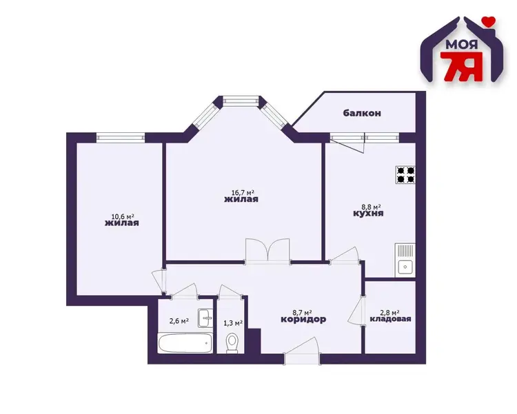 -Кухня 8,8 кв.м. - отдельное преимущество. Это пространство, где приятно готовить и удобно принимать гостей. Выход на балкон именно из кухни - практичное решение: проветривание при готовке, возможность хранить заготовки или технику. Балкон работает как продолжение кухни.