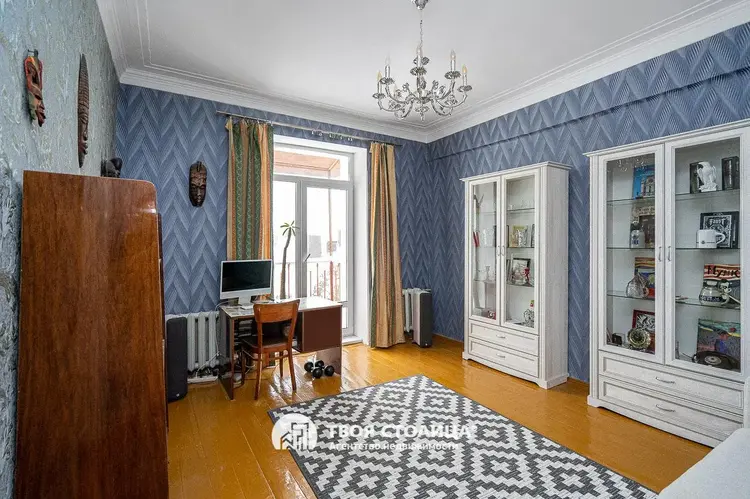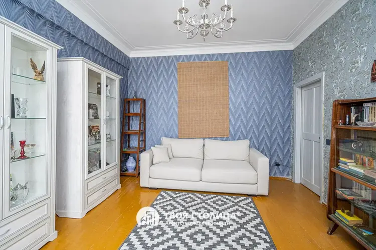 Потолок оштукатурен и покрашен качественной краской, сохранена историческая лепнина. Санузел облицован керамической плиткой, между ванной и кухней сделано оригинальное окошко из стеклоблоков, дающие свет. Установлены приборы учёта воды и газа, домофон. Есть подвальное помещение.