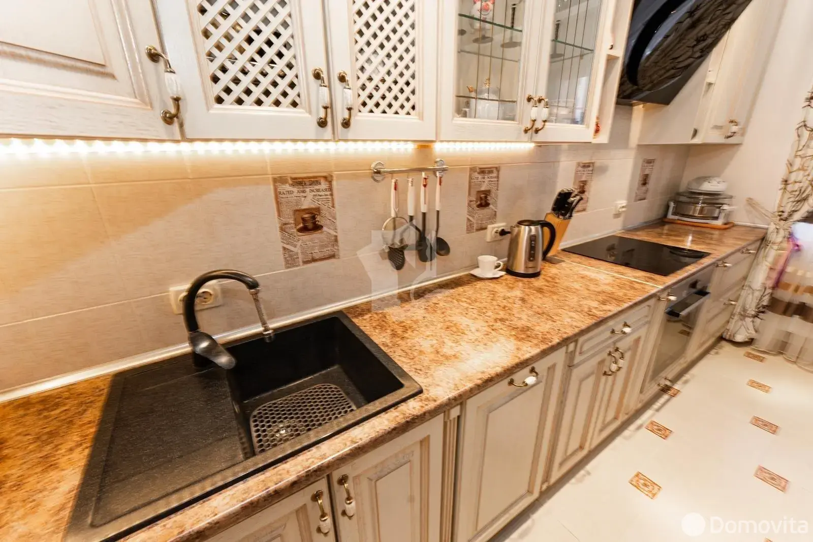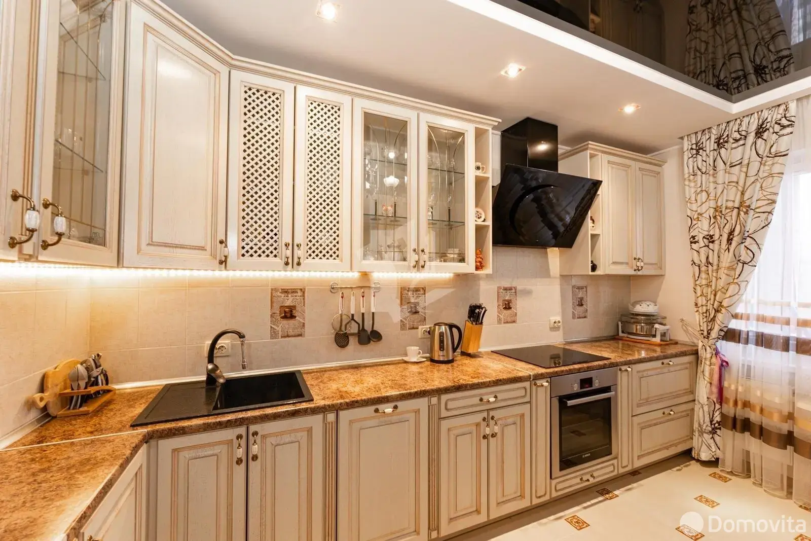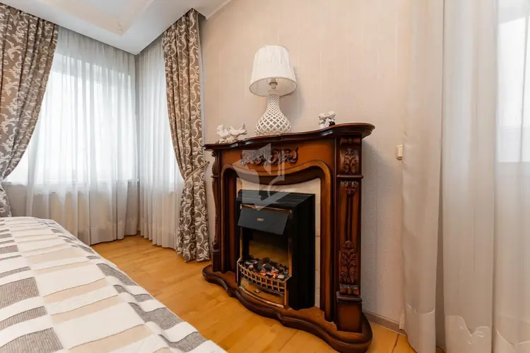 Есть все необходимое для комфортного проживания. Техника (BOSCH), португальская мебель из натуральных материалов дерева, два кондиционера, посудомоечная машина, подогрев пола в зоне (кухни, коридора, два сан.узла, тамбур площадью 4.1 кв.метров). Регулировки освещения, а так же био камин. Две лоджии обшиты натуральной вагонкой.