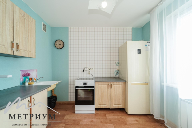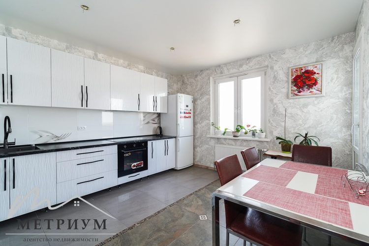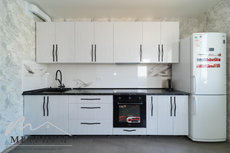 Квартира оформлена в светлых тонах: натяжные потолки с точечным освещением, ламинат в коридоре и комнатах, практичный кафель на кухне и в санузле. Металлическая входная дверь и стеклопакеты гарантируют тепло и безопасность.