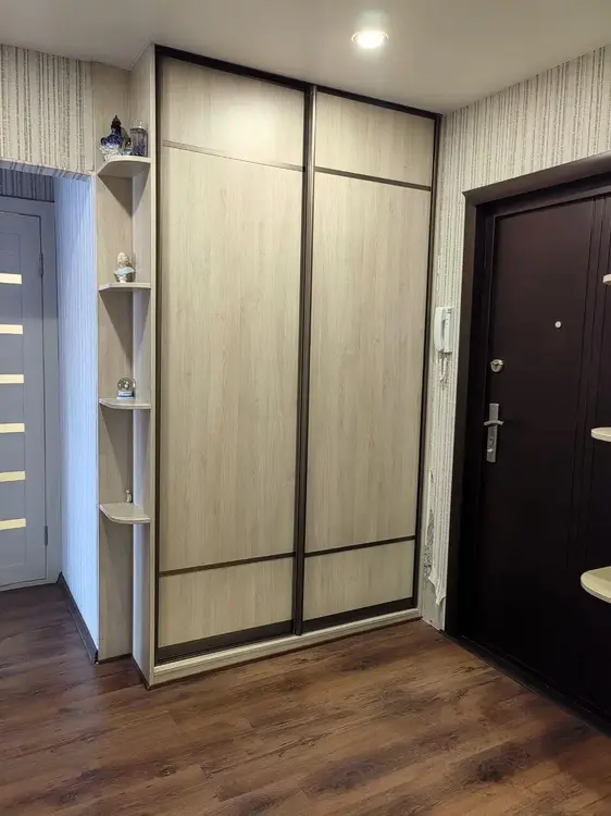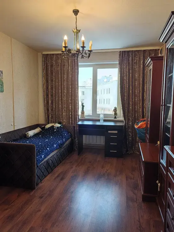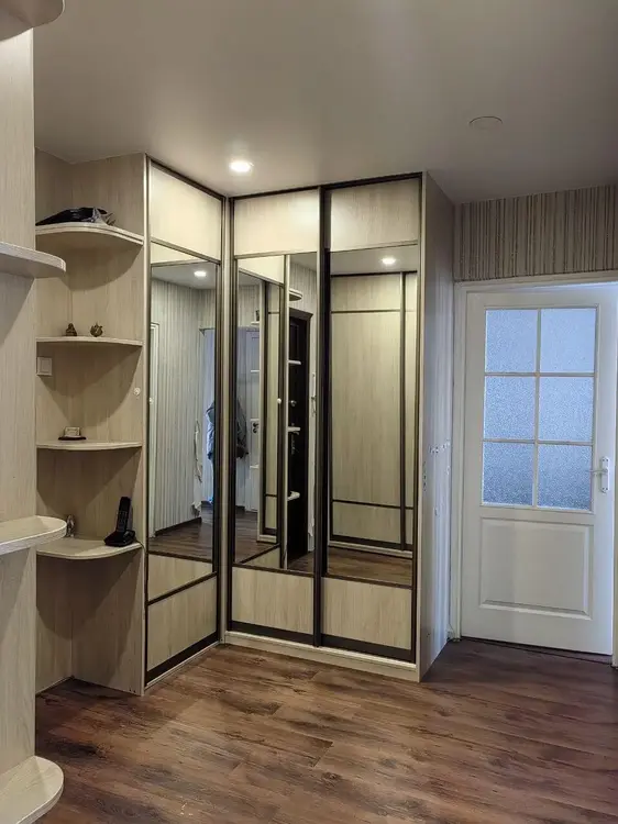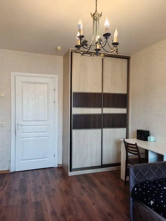 В квартире выполнен современный ремонт: на полу уложен ламинат и плитка, кухне оснащена встроенным кухонным гарнитуром и бытовой техникой — духовым шкафом, варочной панелью, вытяжкой и холодильником. В коридоре и комнатах установлены встроенные шкафы. В санузле и ванной комнате уложена новая облицовочная плитка, сантехника обновлена.