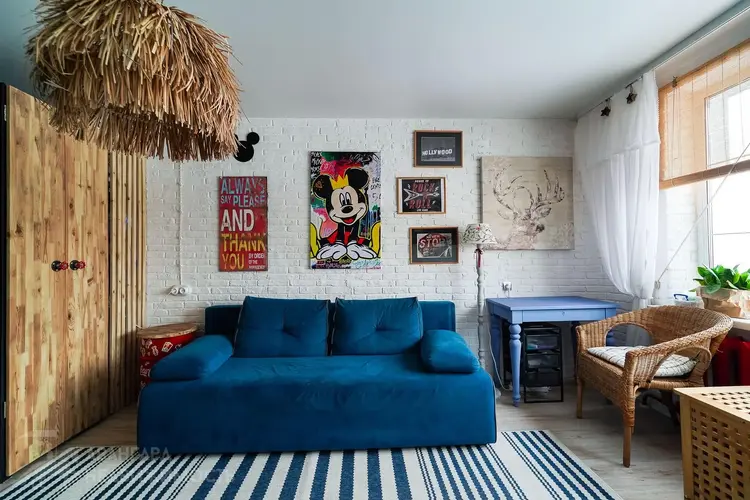 Светлая 2-комнатная квартира с элементами лофта и бохо-стиля: много воздуха, света и уюта.