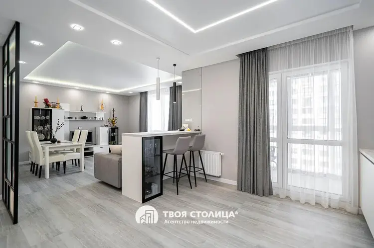 Современная двухкомнатная квартира в многофункциональном комплексе Маяк Минска.Двухкомнатная квартира по адресу ул. Туровского, д. 24 (Первомайский район)Материал стен: каркасно-блочныйГод постройки: 2018Этаж: 6/20Площадь по СНБ: 69.4 Общая площадь: 66.2 Жилая площадь: 56.7Высота потолка: 2.74Мебель, бытовая техника и предметы интерьера - всё остается новому собственнику. Из квартиры открывается великолепный вид на главный бульвар Маяка Минска.Современный и стильный ремонт. Напольное покрытие - кварцвинил. Стены и потолок выровнены и покрашены. Установлены оригинальные светильники и кондиционер Daikin. Оптимальное пространство выделено под кухню-гостиную. Встроенная кухонная мебель с системой хранения и бытовой техникой: варочная панель, духовой шкаф, вытяжка, посудомоечная машина и холодильник. Продуманные места хранения. В спальне вместительный шкаф-гардеробная. В санузле есть все необходимое сантехническое оборудование, а также мебель для ванной комнаты и бойлер. Входная металлическая дверь.В подъезде стильно оформленное лобби. Установлены лифты компании OTIS. Подключена система видеонаблюдения подъезда и придомовой территории. Отлично развита инфраструктура микрорайона: рядом детские сады, новая общеобразовательная школа, торговые и бизнес-центры, объекты сервисного обслуживания и досуга. Шаговая доступность до остановок общественного транспорта и станции метро Восток. Dana Mall — самый крупный торгово-развлекательный центр в Беларуси и Национальная библиотека расположены всего в пяти минутах ходьбы.Удобный выезд на МКАД, хорошее транспортное сообщение со всеми районами столицы и пригородом. 10 минут пешком до станции метро Восток. Развитая транспортная сеть: автобусы, троллейбусы, маршрутные такси.Дом расположен в живописном месте - у набережной канала Слепянской водной системы. Зелёная зона, многочисленные места для прогулок и отдыха. Прямая продажаРасширенные консультации по покупке, продаже и обмену вашей недвижимости можно получить в офисе Центральном, расположенном в Бизнес-центре Kiroff по адресу Минск, улица Кирова, 8. 2 этажСмотреть подробнее ТОП-20 ДЕШЕВЫХ КВАРТИРБАЗА ПОКУПАТЕЛЕЙ – узнайте, кто готов купить вашу квартиру прямо сейчас!КАЛЬКУЛЯТОР СТОИМОСТИ ЖИЛЬЯ – онлайн- расчет стоимости вашей квартиры!ПЕРЕЕЗЖАЕМ В НОВОСТРОЙКУ- программа обмена старого жилья на новое. 2 сделки в 1 день!ПАРТНЕР-КРЕДИТ сопровождение кредитования для покупки и обмена «под ключ»ВАШ ВАРИАНТ- проверка квартир перед покупкой и оформление сделки, если вы нашли объект самостоятельно. ООО "Твоя столица", УНП 101136973, лицензия №02240/15 от 17.02.05г.