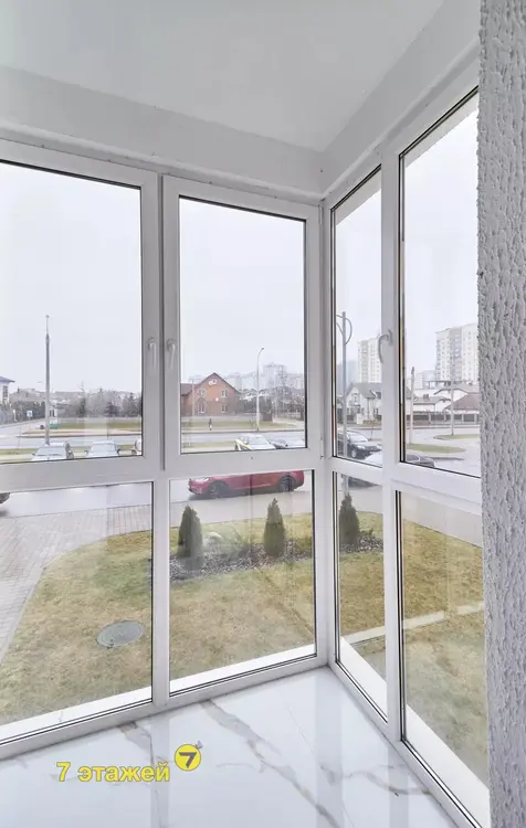 Окна квартиры выходят на обе стороны дома, есть застекленная лоджия с выходом их кухни.