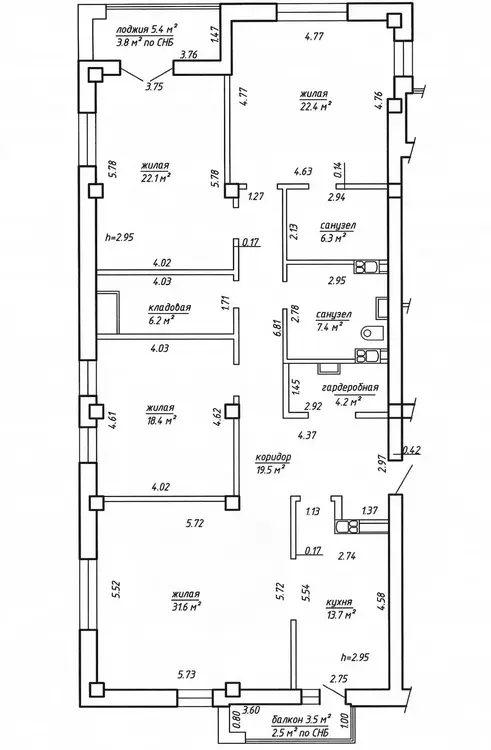 Площадь указана по СНБ.