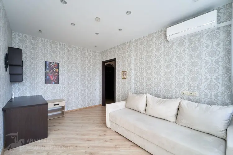 В квартире с нуля сделан ремонт, заменена проводка, новые пластиковые трубы, выровнены стены и оклеены обоями, на полу ламинат и плитка, натяжные потолки, встроенная кухня с техникой – варочная поверхность, духовой шкаф, вытяжка, холодильник, микроволновка, чайник, так же в квартире остается стиральная машина, телевизор, диван, встроенная мебель, шкаф-купе, кровать с матрасом. Установлен кондиционер.