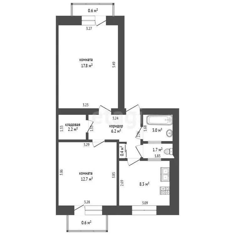 Площадь кухни: 8.3 м2