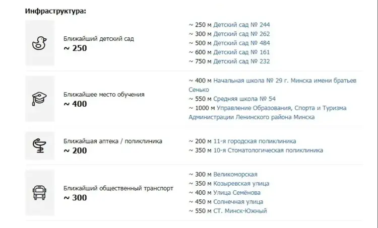 * Развитая инфраструктура: Обжитой район. Рядом супермаркеты, тренажерные залы, аптеки и банки. В нескольких шагах — Лошицкий парк с каналом, Яблоневый сад, отличные места для пробежек или отдыха.